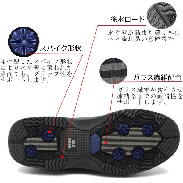 本底にはガラス繊維を採用し雪・凍結路面でも安定した歩行をサポートしてくれる防滑底を使用しています。